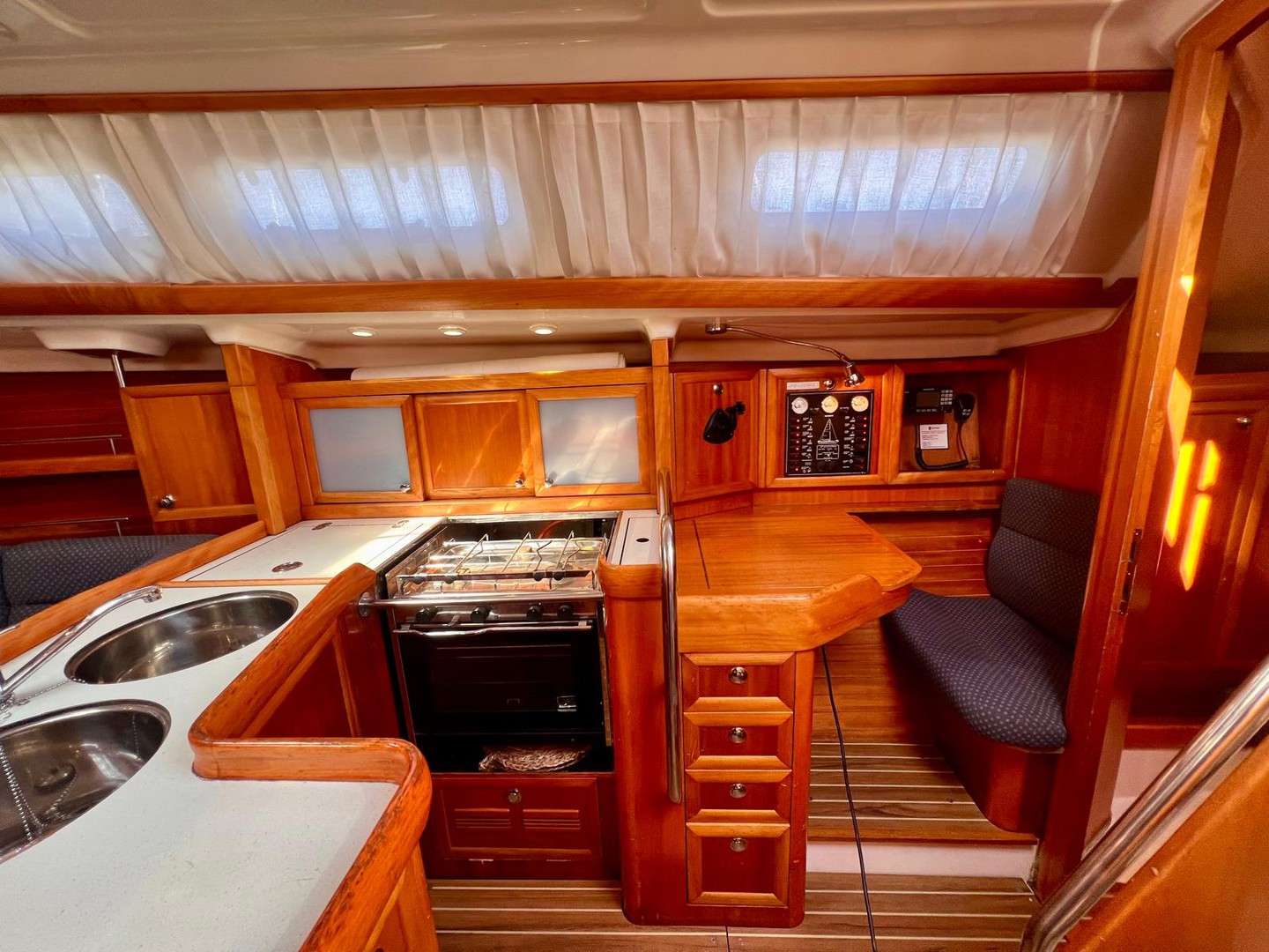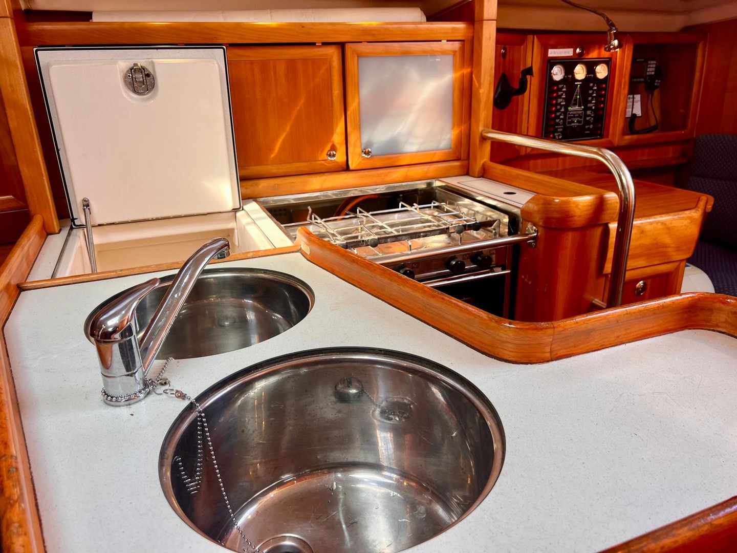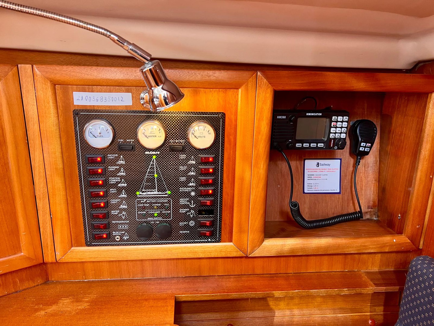 Binoculars, Electronic wind instruments, Gps, Depth sounder, Vhf radio, Speedometer, Anchor box, Navigation lights, Ais.