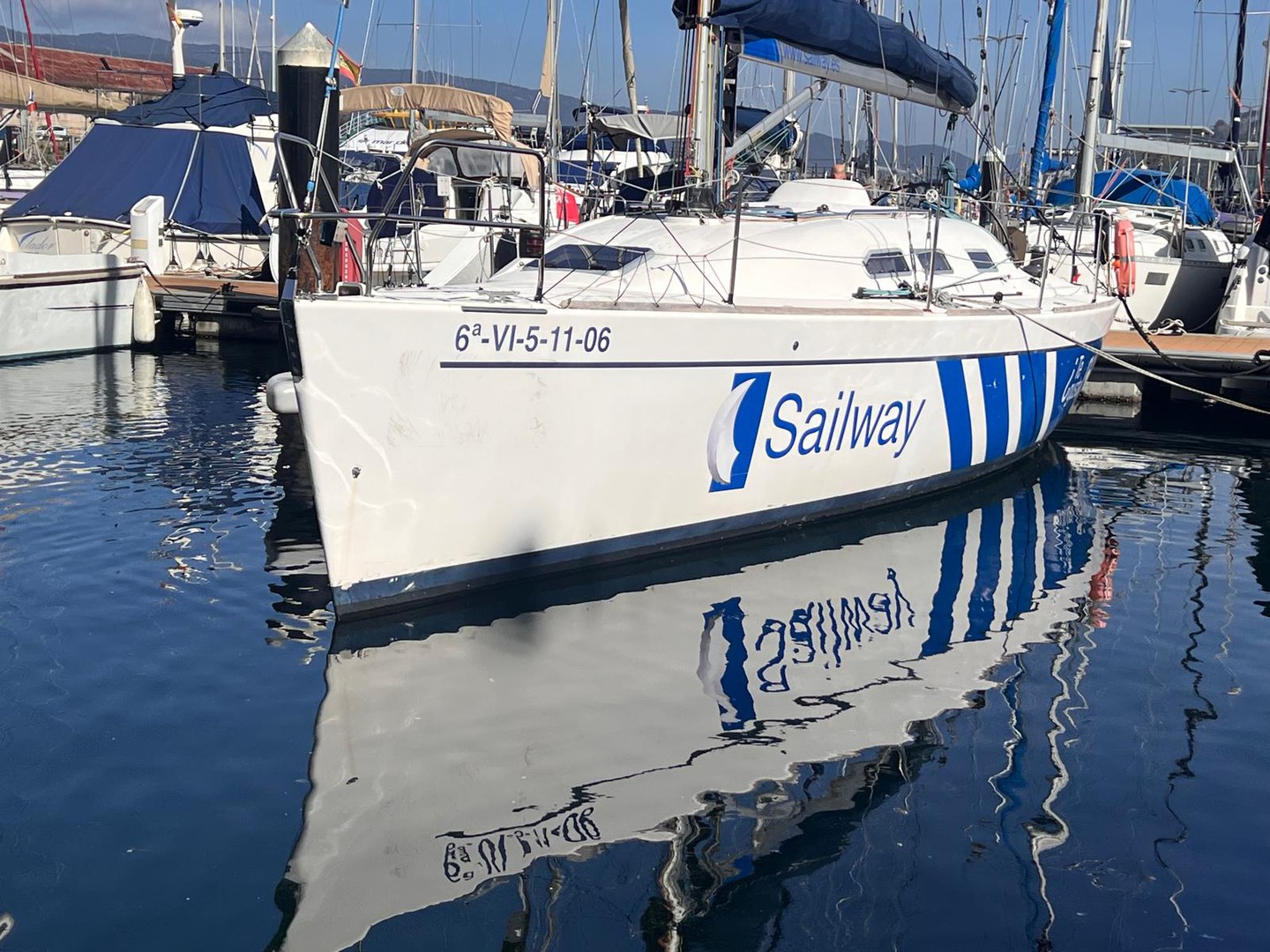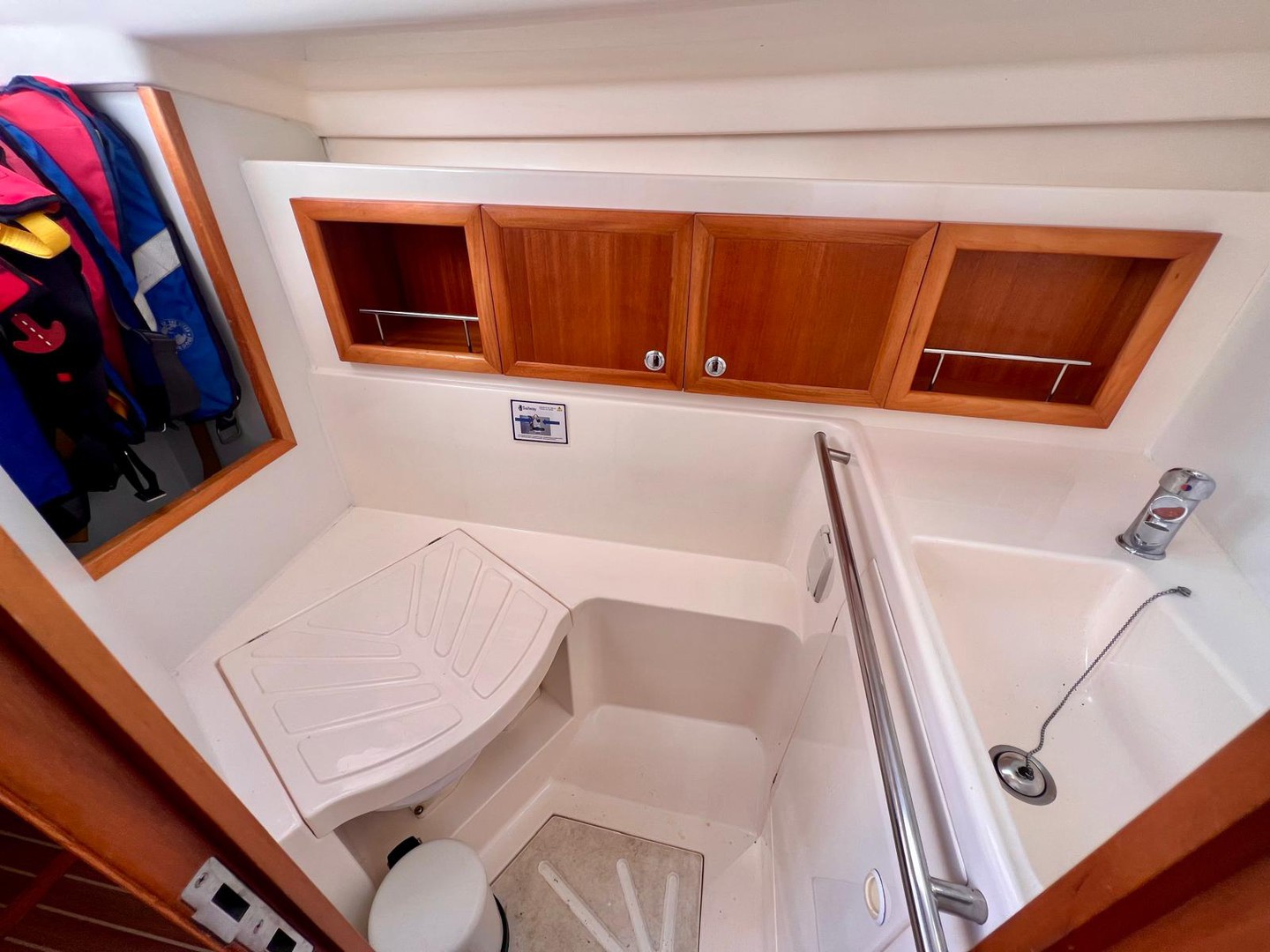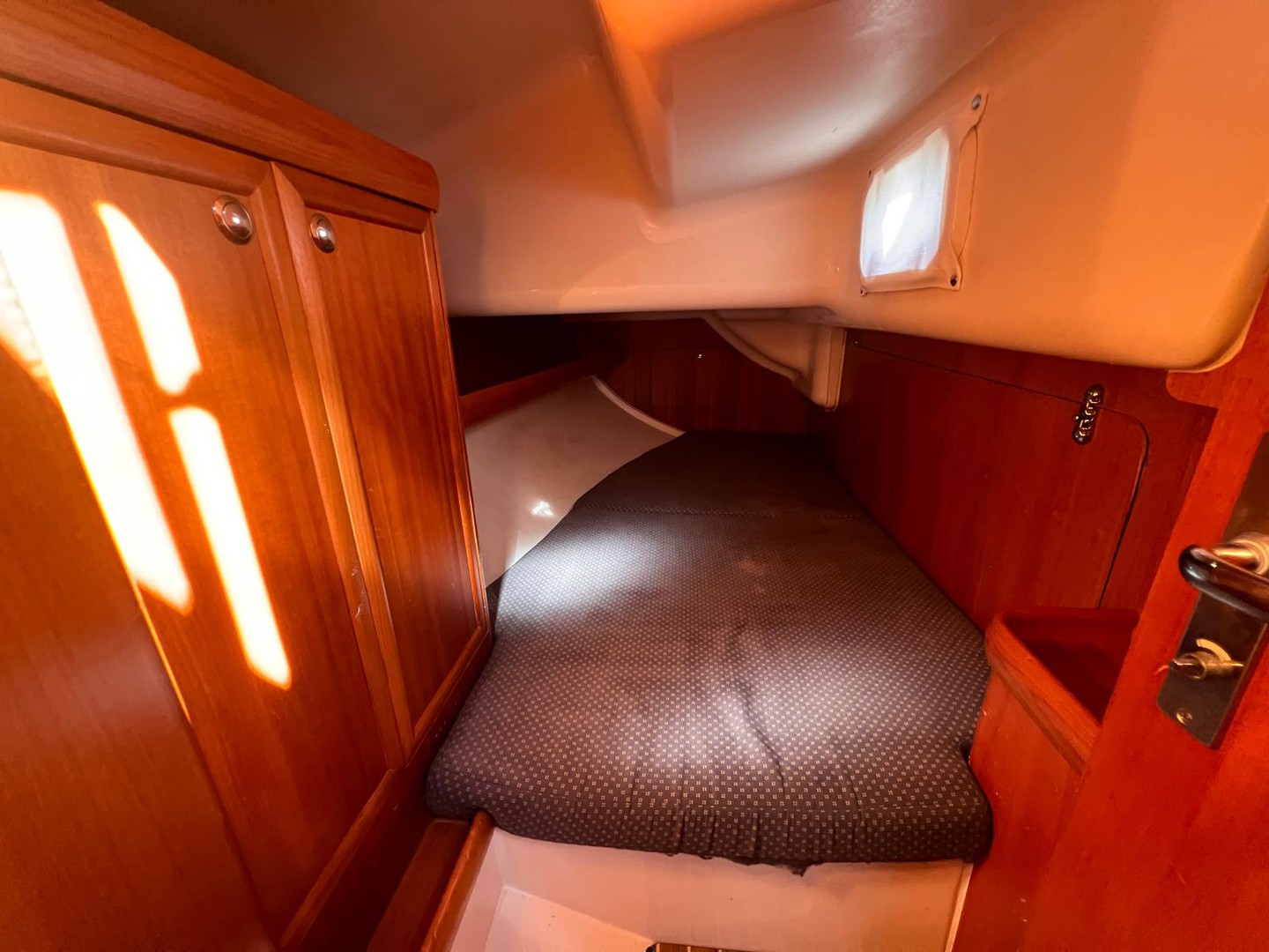 Dinghy, Genoa, Battened mainsail, Spinnaker boom, Bilge pump, Diving mask, Electric bilge pump.